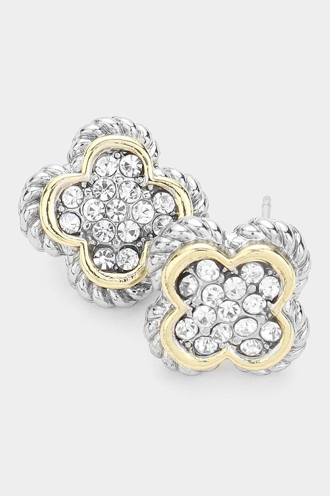 14K Gold Plated CZ Stone Paved Quatrefoil Necklace