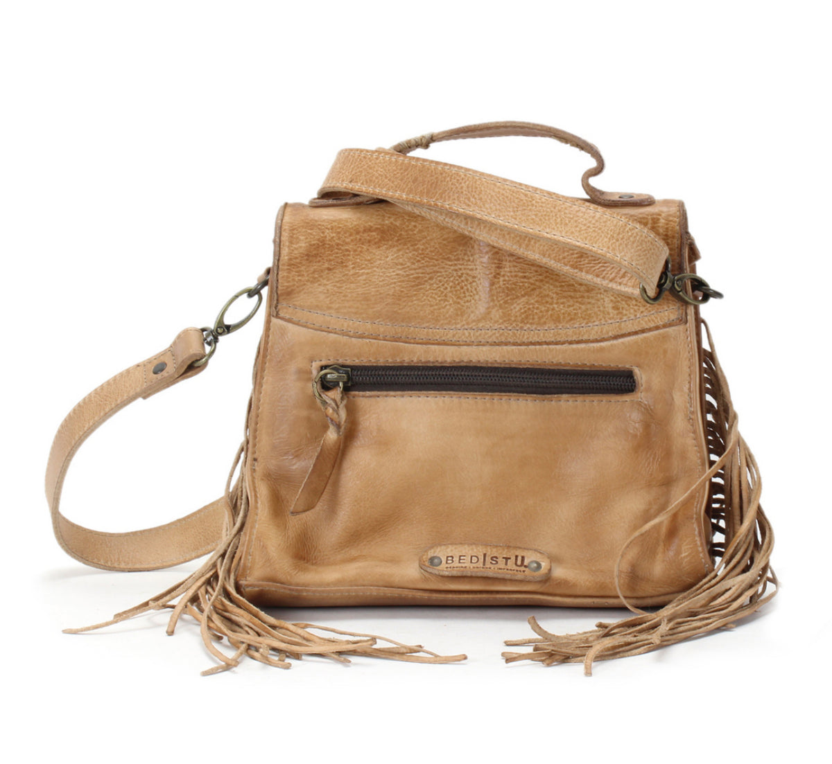 • Compact crossbody with adjustable and removable strap, fun fringe