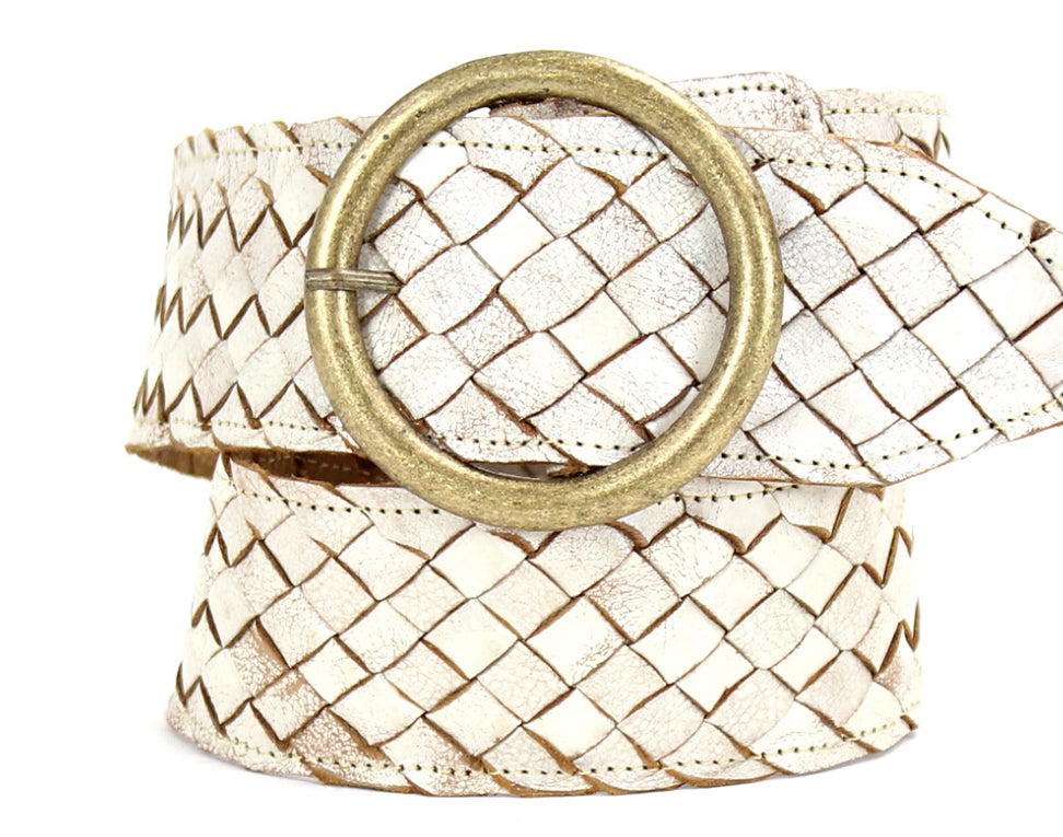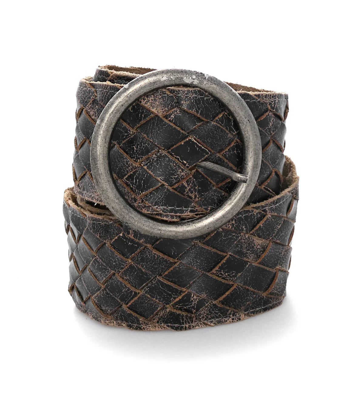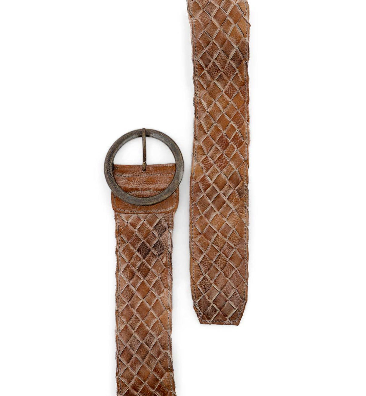 Created from meticulously woven distressed leather and adorned with a round brass-tone buckle, the Dreamweaver effortlessly infuses a touch of vintage allure into your style. Whether worn on the waist or the hip, this belt stands as a remarkable addition to any wardrobe.