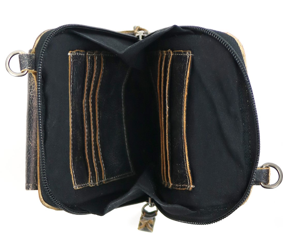 - Compact leather phone case and essentials holder, adjustable and removable strap