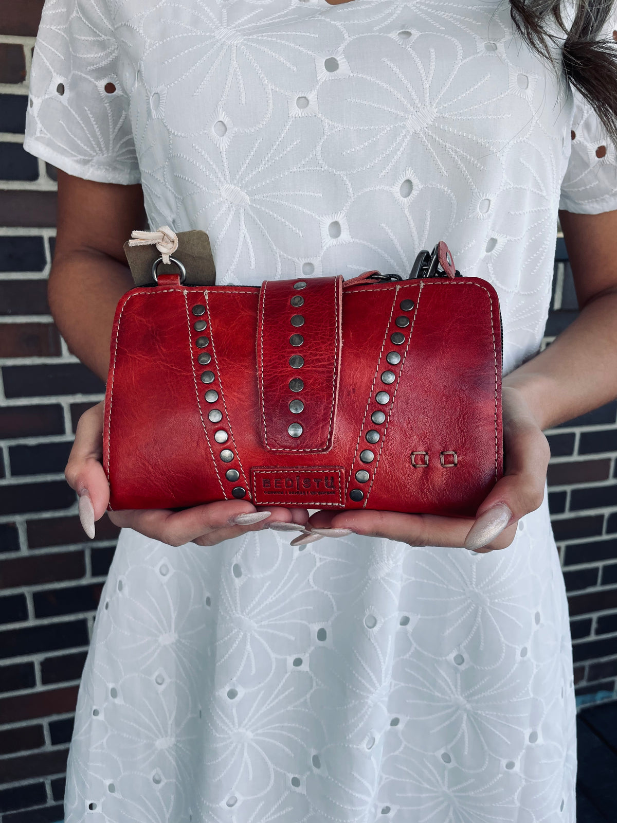 Flee is the wallet that does it all. With a secure zip closure and an additional magnetic strap, your essentials stay safe and organized. Featuring metal stud details and a removable crossbody strap, Flee effortlessly transforms from a sleek wallet into a hands-free crossbody bag. Perfect for those on the go.