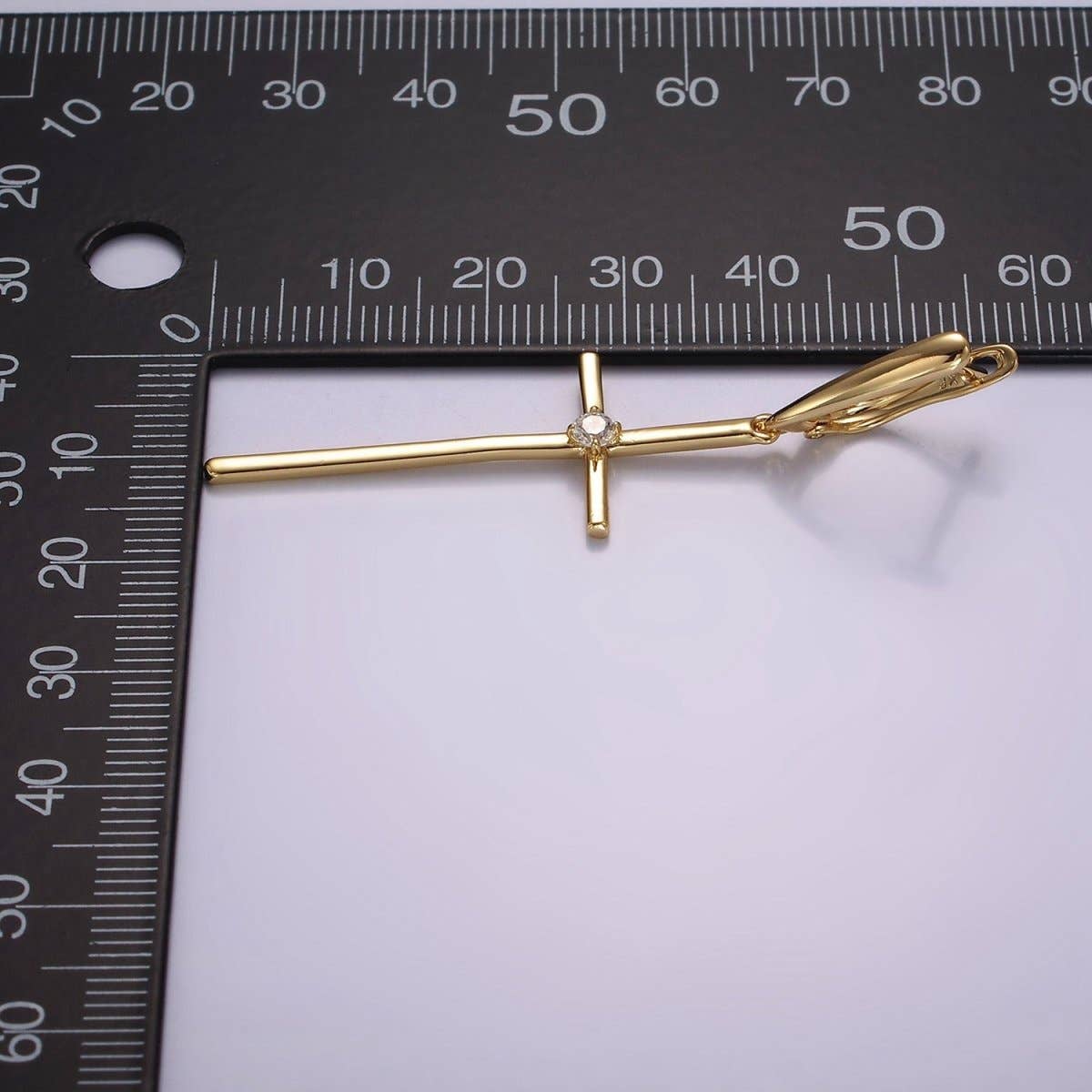 14K Gold Filled Clear CZ Latin Cross Drop English Lock Hoop Earrings | AE402