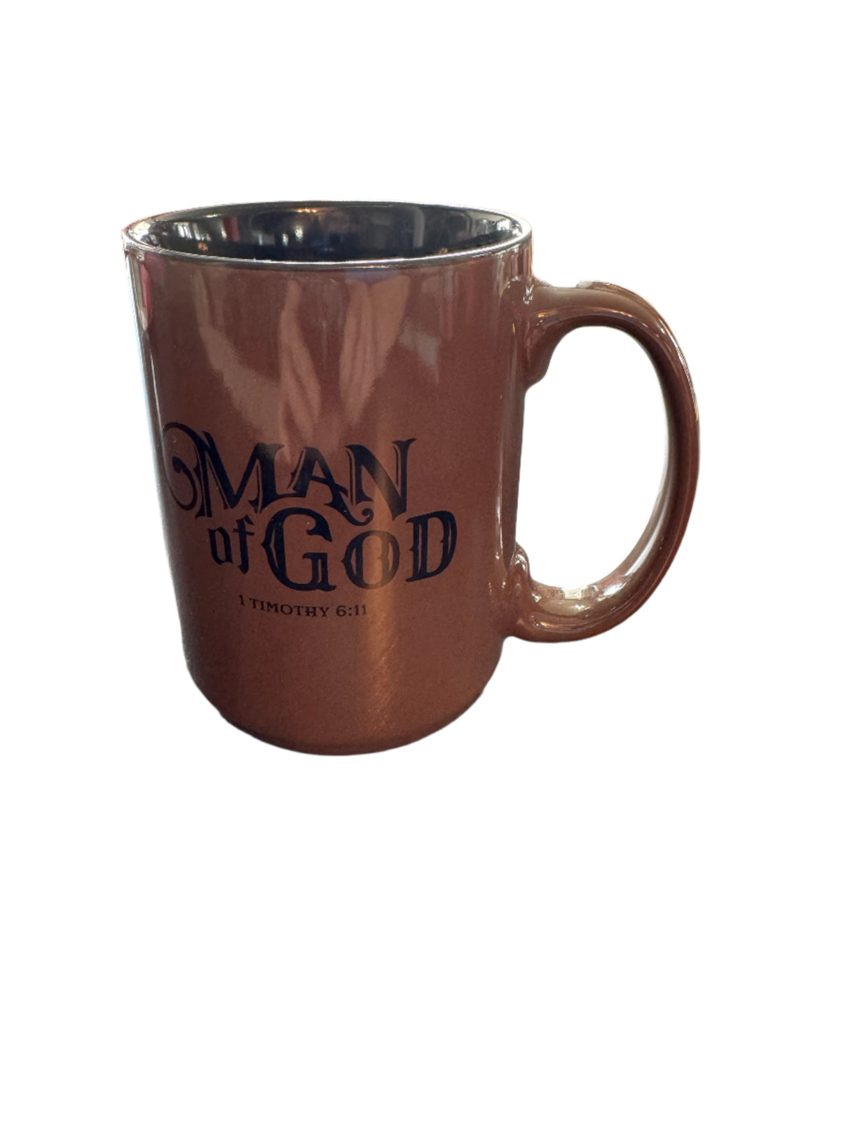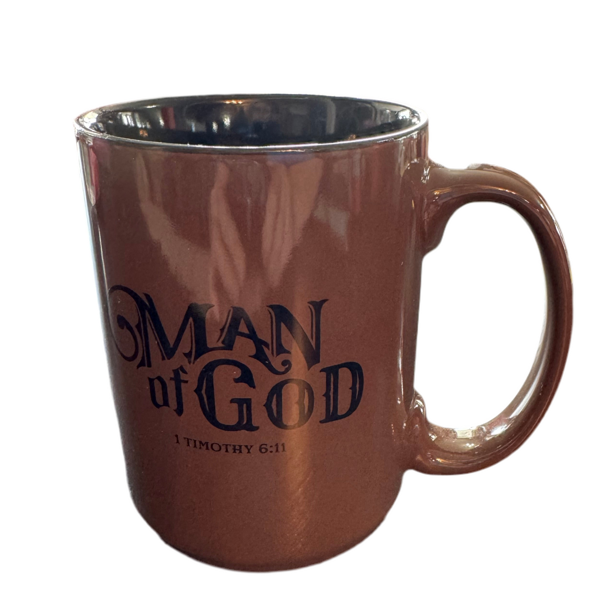 The empowering verse for a special man in your life to live by from 1 Timothy 6:11, “But you, man of God, flee from all this, and pursue righteousness, godliness, faith, love, endurance, and gentleness” is boldly featured on the brown coffee mug, Man Of God Mug. Make your husband, dad, uncle, son or friend feel loved and appreciated by giving this Christian coffee mug for Father’s Day, Christmas, graduation or another important milestone in his life. When he is sipping his favorite hot beverage, the verse on the back of the 1 Timothy 6:11 Coffee Mug will inspire him to keep growing as a man of God and leading his family in the ways of Christ. Man of God Christian ceramic mug, 14 fl oz capacity, Packaged in a tuck-top Kraft cardboard box