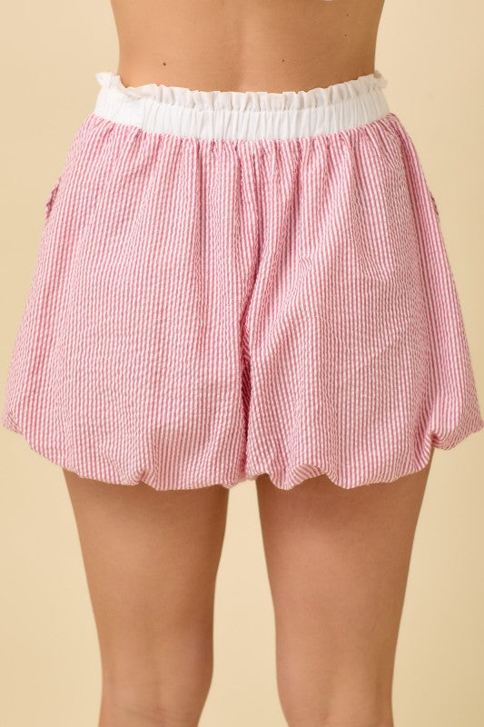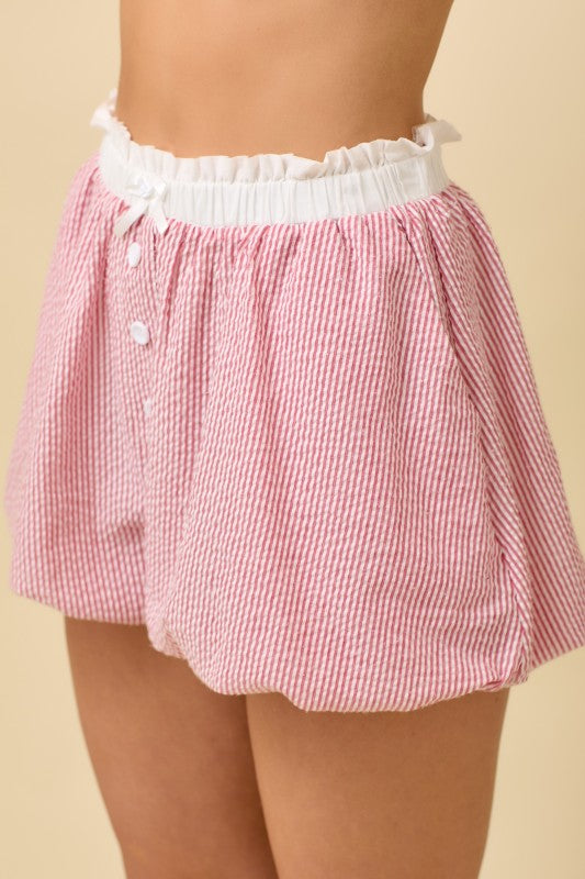 Seersucker Stripe Bubble Hem Boxer Shorts With Contrasting Band And