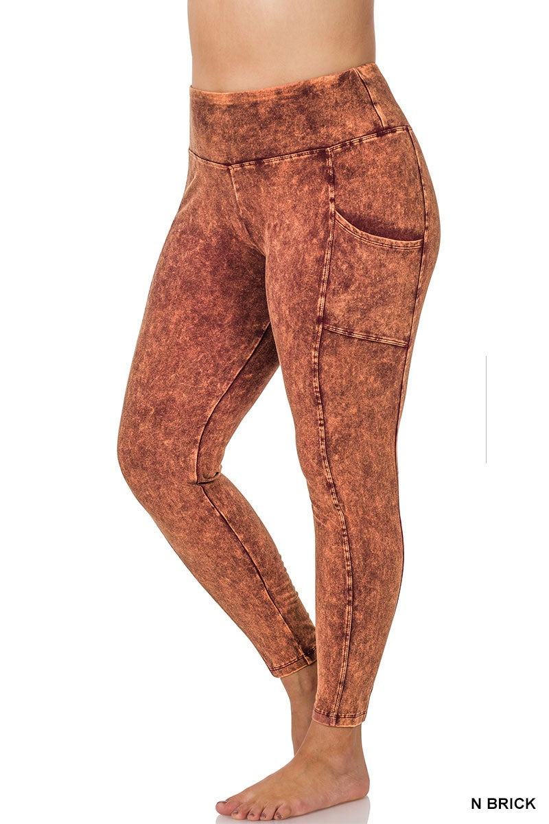 Plus Size Mineral Wash Wide Waistband Leggings w/Pockets