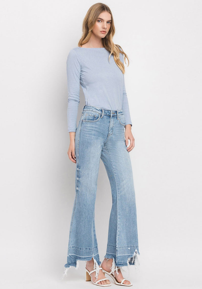 High-Waisted Wide Leg Cuffed Jeans