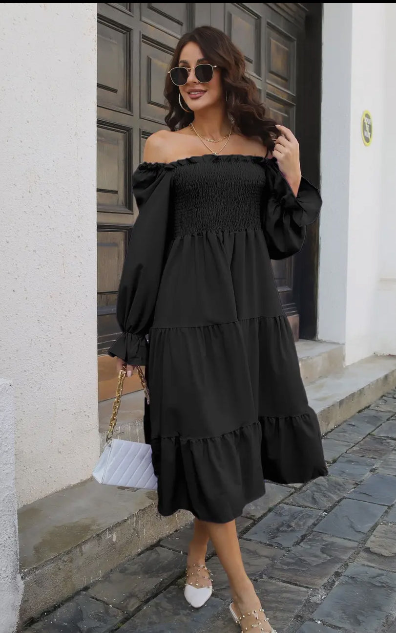 CABLE FLOUNCES SQUARE NECKLINE TIERED SWING DRESS